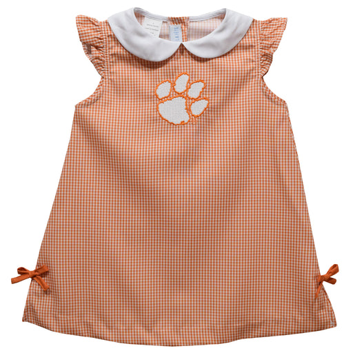 Clemson Tigers Embroidered Orange Gingham A Line Dress