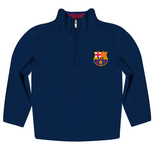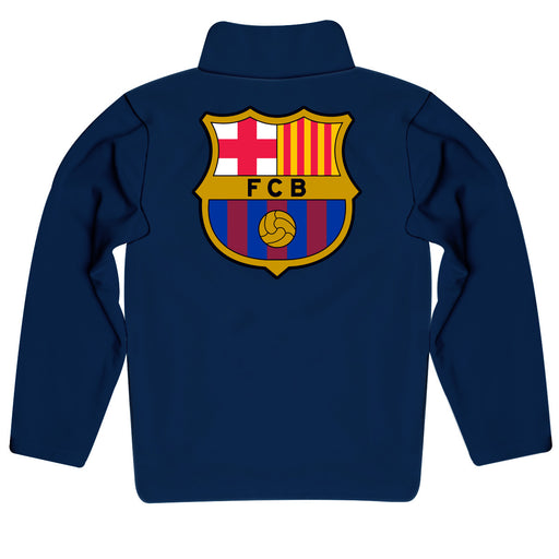 FC Barcelona Navy Quarter Zip Pullover Stripes on Sleeves