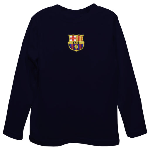 FC Barcelona Embroidered Navy Long Sleeve Boys Tee Shirt