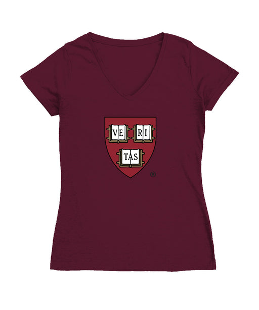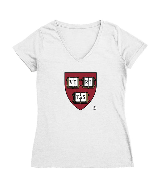 Harvard Crimson Women's V-neck Fitted Cotton T-Shirt White