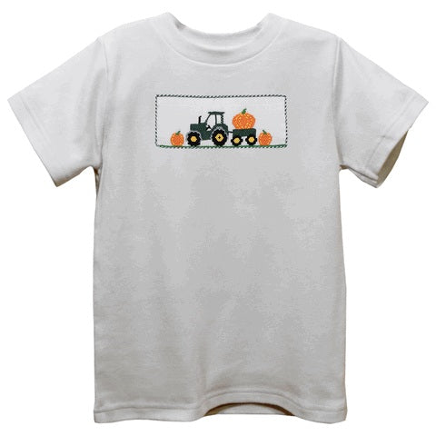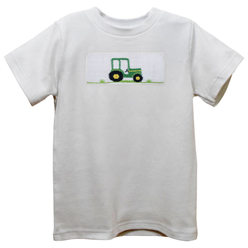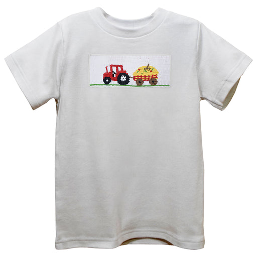 Trailer Car Smocked White Knit Short Sleeve Boys Tee Shirt