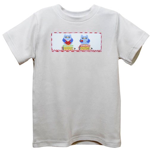 Back To School Smocked White Knit Short Sleeve Boys Tee Shirt