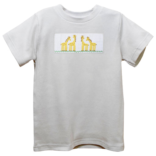 Animals Smocked White Knit Short Sleeve Boys Tee Shirt