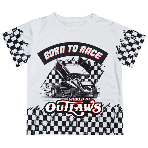Racing Car Smocked White Knit Short Sleeve Boys Tee Shirt