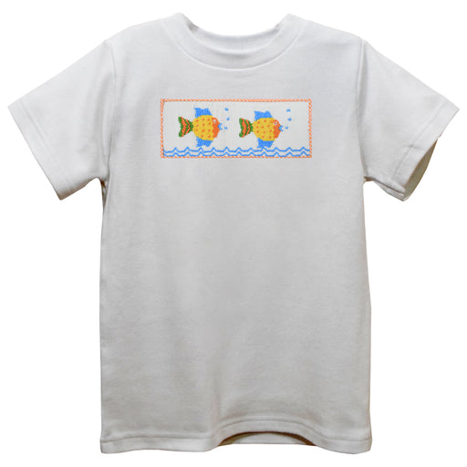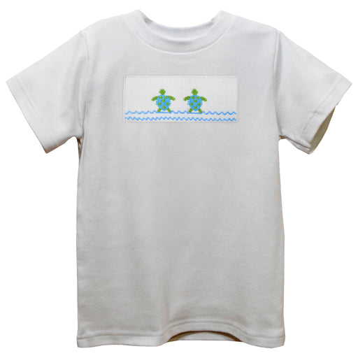 Sandcastle Smocked White Knit Short Sleeve Boys Tee Shirt
