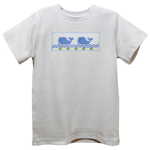 Whales Smocked White Knit Short Sleeve Boys Tee Shirt