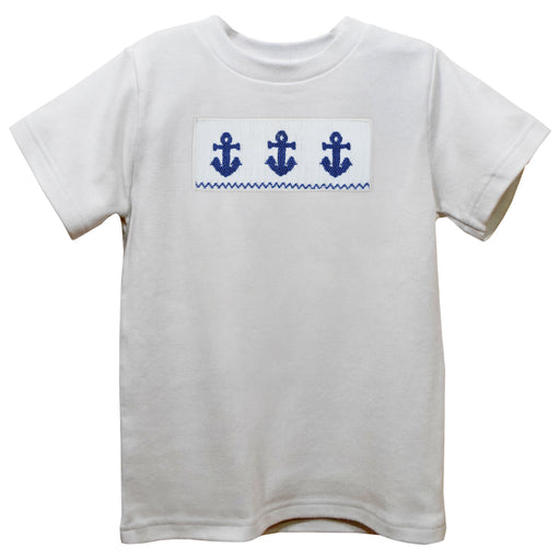 Anchors Smocked White Knit Short Sleeve Boys Tee Shirt