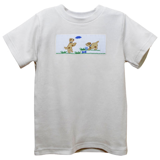 Puppy Smocked White Knit Short Sleeve Boys Tee Shirt