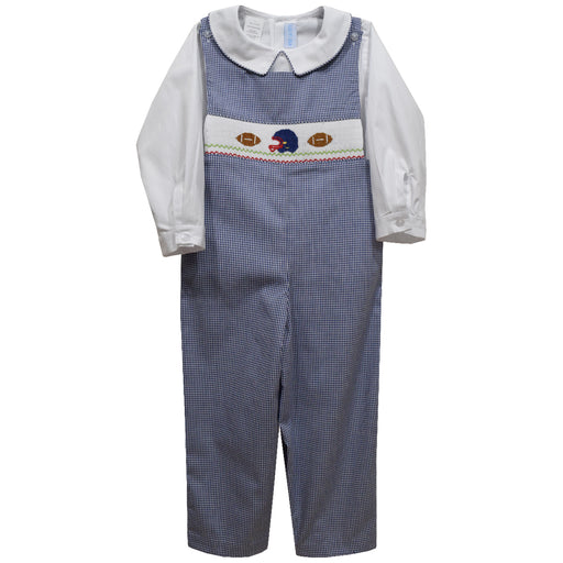 Navy Football Smocked Navy Check Boys Long Jon Jon and Shirt Long Sleeve