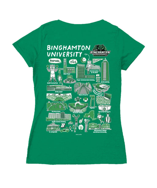 Binghamton Bearcats Hand Sketched Vive La Fete Impressions Artwork Green Women Cotton Short Sleeve V-Neck Tshirt