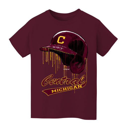 Central Michigan Chippewas Original Dripping Baseball Helmet T-Shirt Cotton by Vive La Fete
