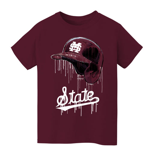 Mississippi State Bulldogs Original Dripping Baseball Helmet Maroon Boys T-Shirt by Vive La Fete