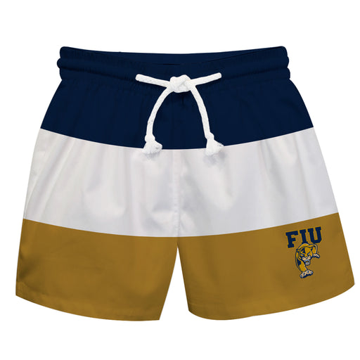Florida International Panthers Vive La Fete Blue White Gold Stripes Swimtrunks