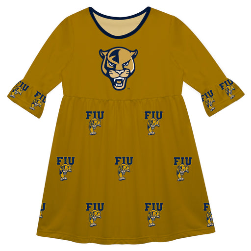 FIU Panthers Vive La Fete Girls Game Day 3/4 Sleeve Solid Gold All Over Logo on Skirt