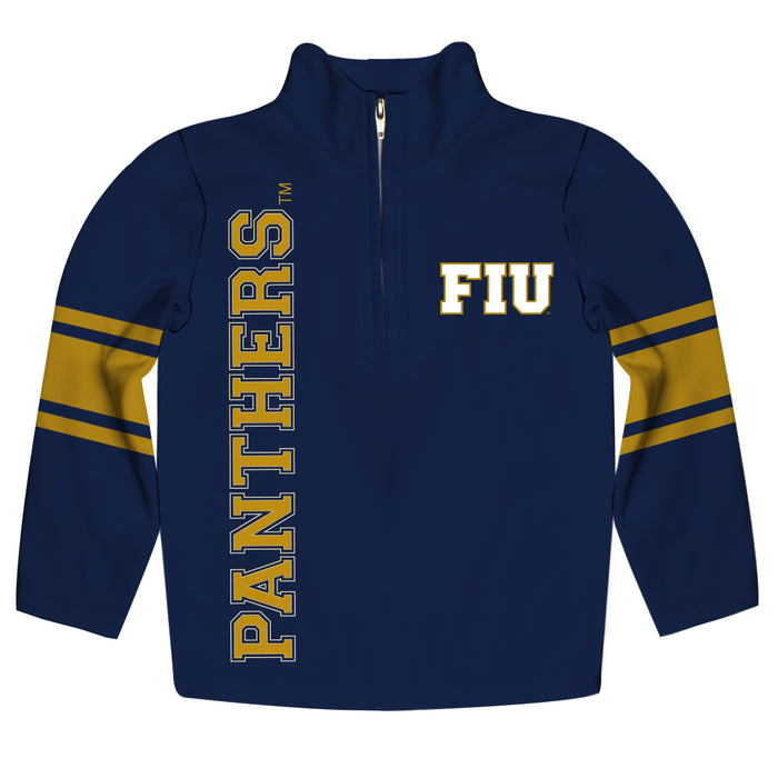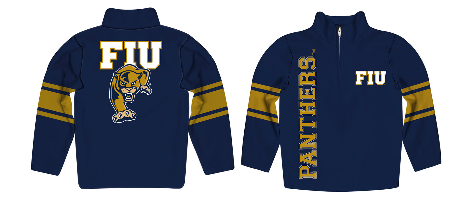 FIU Panthers Stripes Blue Long Sleeve Quarter Zip Sweatshirt