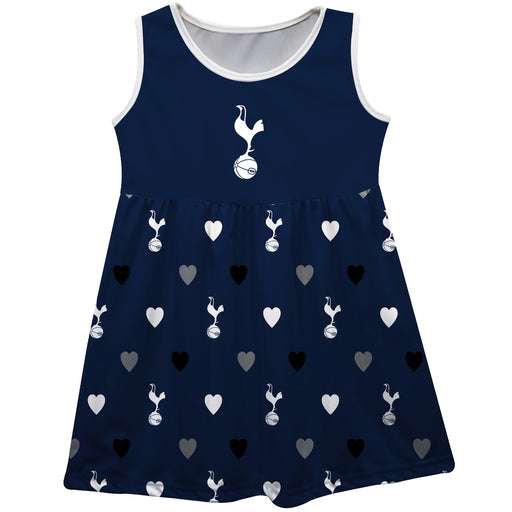Tottenham Hotspur Girls Sleeveless Tank Dress Solid Navy Logo All Over Print on Skirt