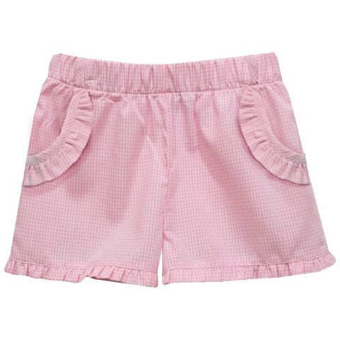 Light Pink Gingham Girl Shorts With Ruffled Pockets