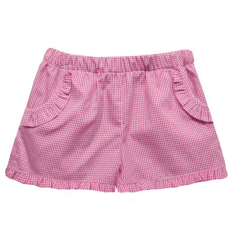 Raspberry Mini Check Girls Short With Ruffle Pockets