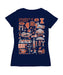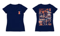Illinois Fighting Illini Hand Sketched Vive La Fete Impressions Artwork Navy Women Cotton Short Sleeve V-Neck Tshirt