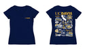 UC Davis Aggies Hand Sketched Vive La Fete Impressions Artwork Navy Women Cotton Short Sleeve V-Neck Tshirt