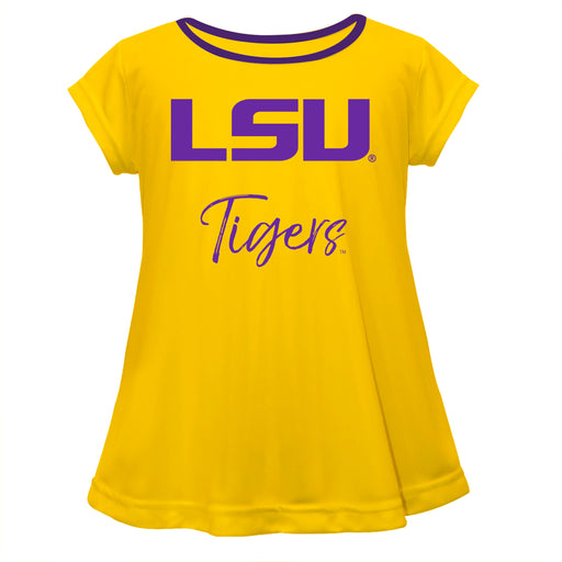 LSU Tigers Vive La Fete Girls Game Day Short Sleeve Gold Top with School Logo and Name