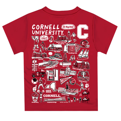 Cornell Big Red Hand Sketched Vive La Fete Impressions Artwork Boys Red Short Sleeve Tee Shirt