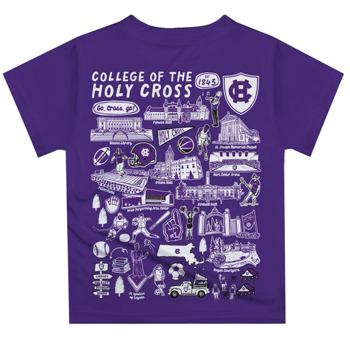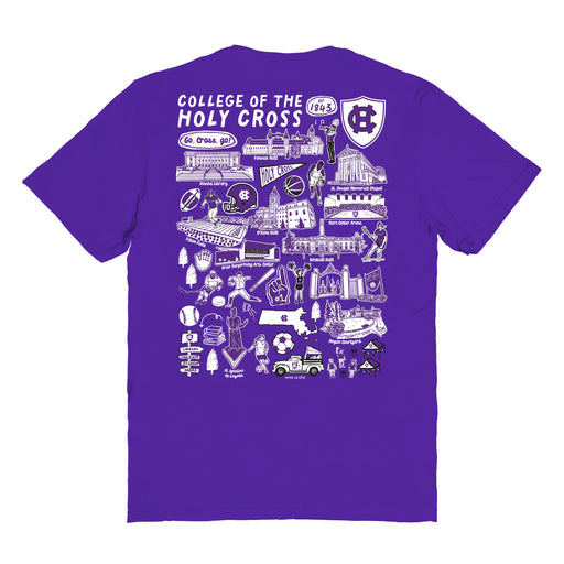 College of the Holy Cross Hand Sketched Vive La Fete Impressions Purple Cotton Tshirt for Women