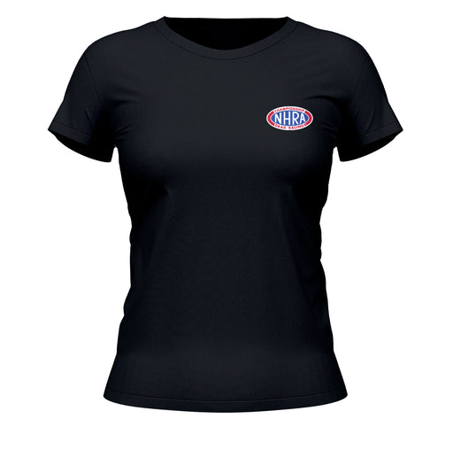 Look great with this new race team spirit women tee shirt. Go out, go to the race, and cheer loudly and proudly with his NHRA gear by Vive La Fete....