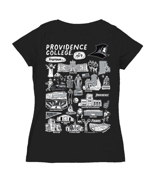 Providence Friars Hand Sketched Vive La Fete Impressions Artwork Black Women Cotton Short Sleeve V-Neck Tshirt