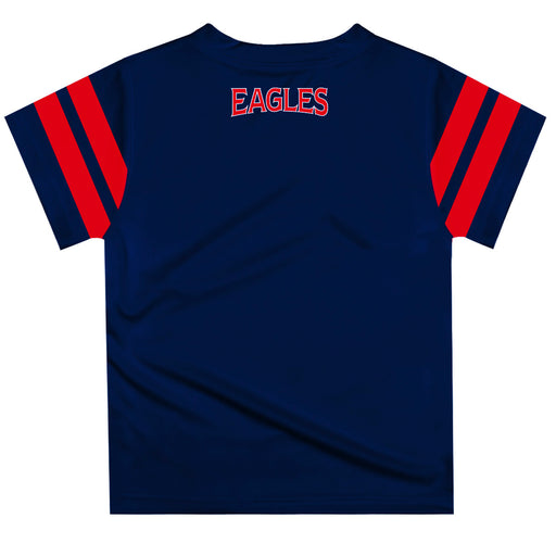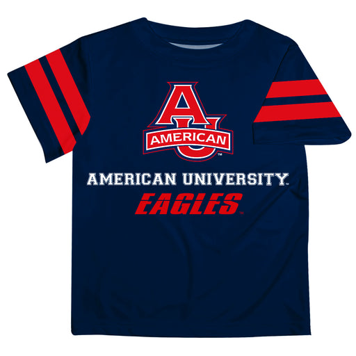 American University Eagles Vive La Fete Boys Game Day Blue Short Sleeve Tee with Stripes on Sleeves