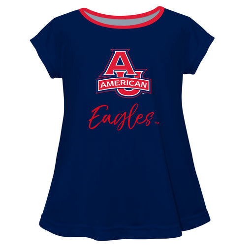 American University Eagles Vive La Fete Girls Game Day Short Sleeve Blue Top with School Logo and Name