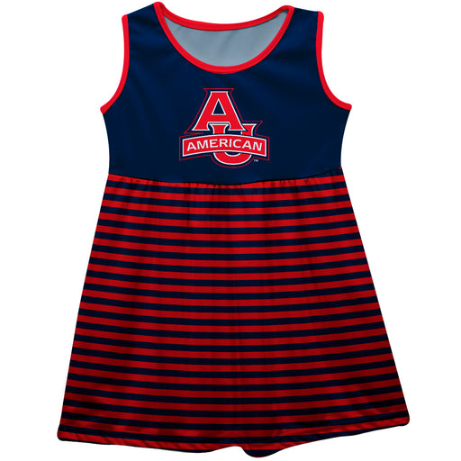 American University Eagles Vive La Fete Girls Game Day Sleeveless Tank Dress Solid Blue Logo Striped on Skirt