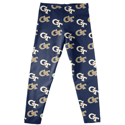 Georgia Tech Yellow Jackets All Over Logo Blue Leggings