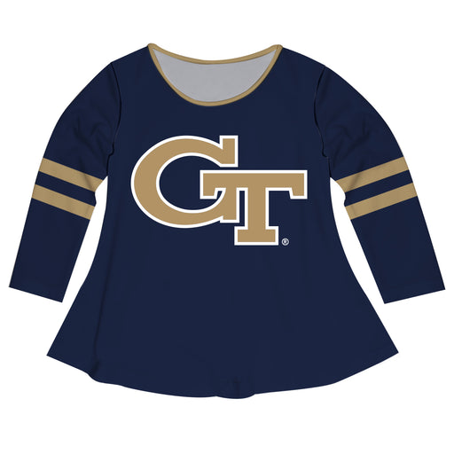 Georgia Tech Yellow Jackets Big Logo Blue Stripes Long Sleeve Girls Laurie Top