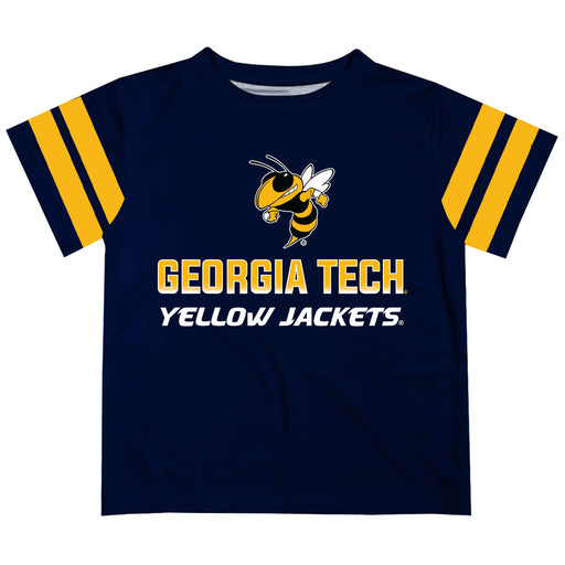 Georgia Tech Yellow Jackets Stripes Blue Short Sleeve Tee Shirt