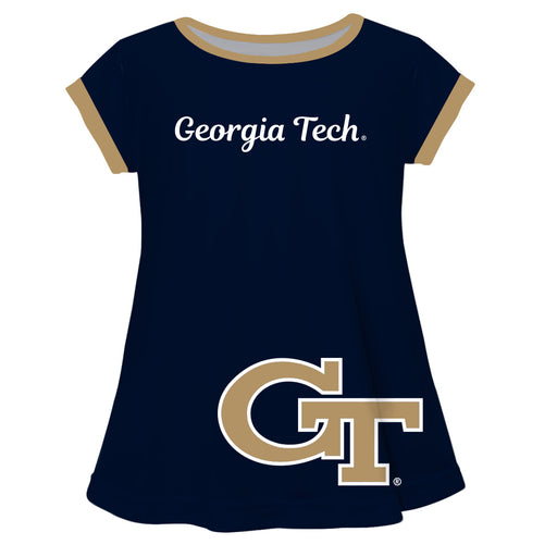 Georgia Tech Yellow Jackets Big Logo Blue Short Sleeve Girls Laurie Top