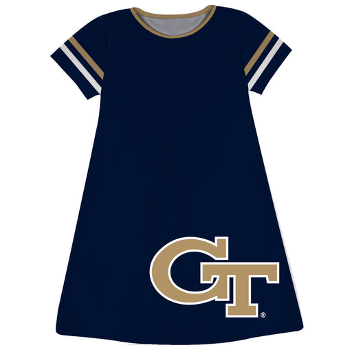 Georgia Tech Yellow Jackets Big Logo Blue Stripes Short Sleeve A Line Dress