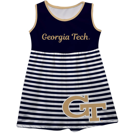 Georgia Tech Yellow Jackets Vive La Fete Girls Game Day Sleeveless Tank Dress Solid Gold Logo Striped on Skirt