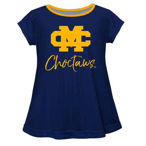 Mississippi College Choctaws Vive La Fete Girls Game Day Short Sleeve Blue Top with School Logo and Name
