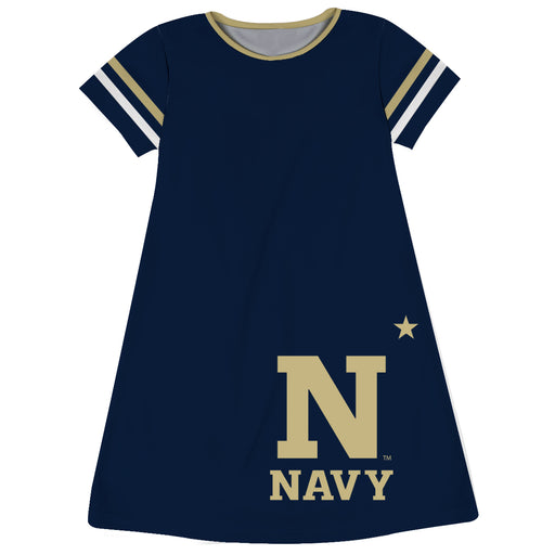 Do not miss any official event. Order our United States Naval Academy Navy Blue Solid Short Sleeve Girls La Scoop neckSwing style Item number: NUSN...