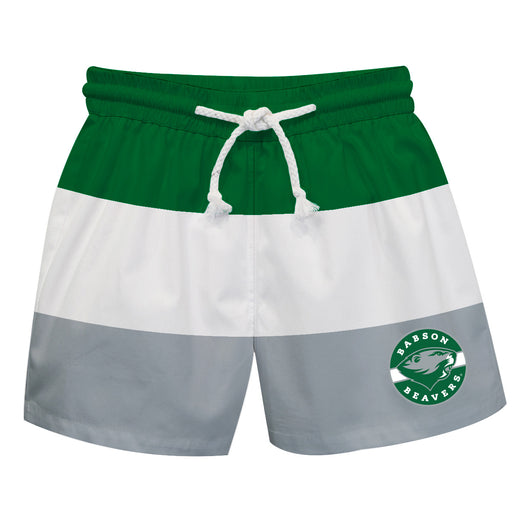 Babson College Beavers Vive La Fete Green White Gray Stripes Swimtrunks