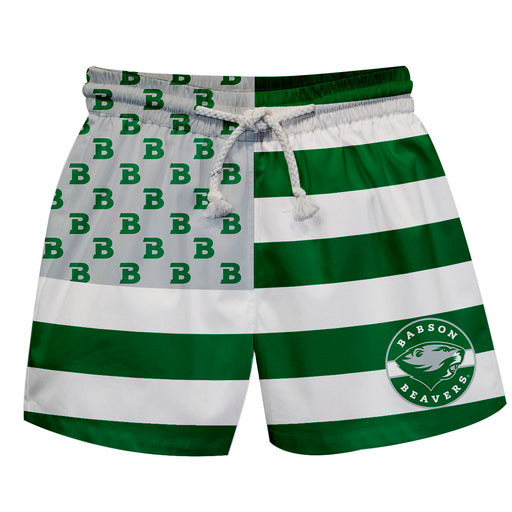 Babson College Beavers Vive La Fete Game Day Green White Gray Flag Swimtrunks