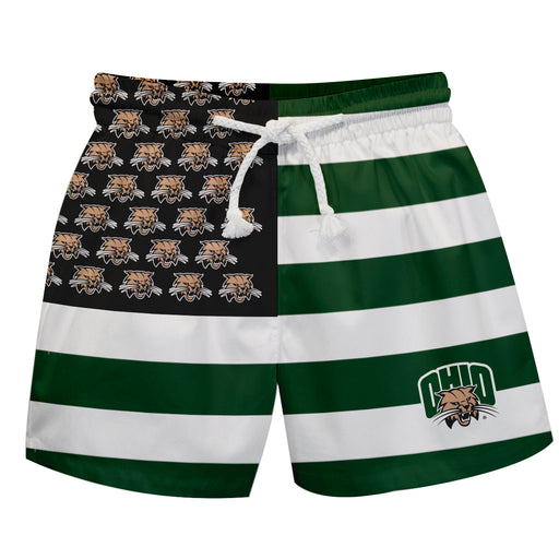 Ohio Bobcats Vive La Fete Game Day Green White Black Flag Swimtrunks