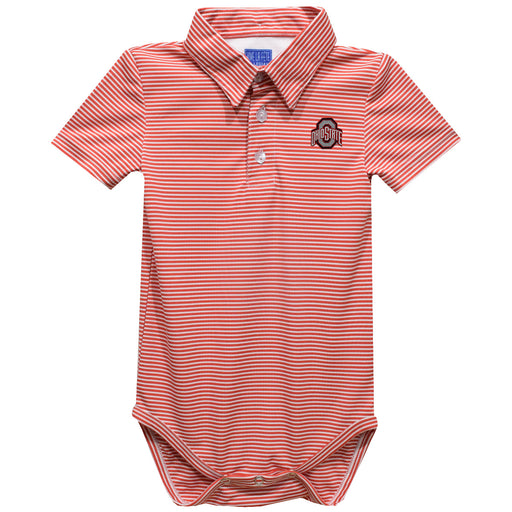 Ohio State Embroidered Cardinal Red Stripe Knit Boys Polo Bodysuit