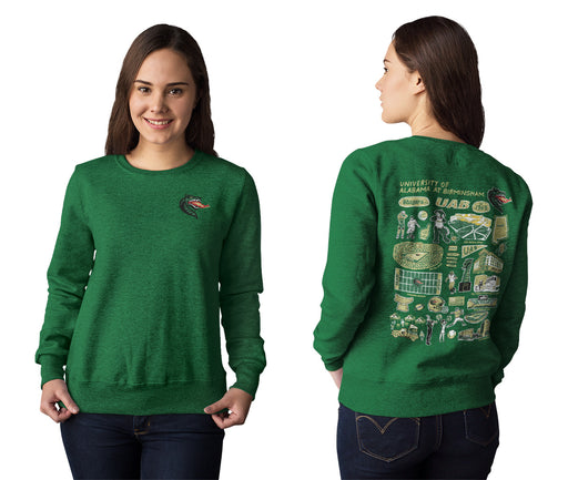 Alabama at Birmingham Blazers Hand Sketched Vive La Fete Artwork Green Crewneck Sweatshirt for Women