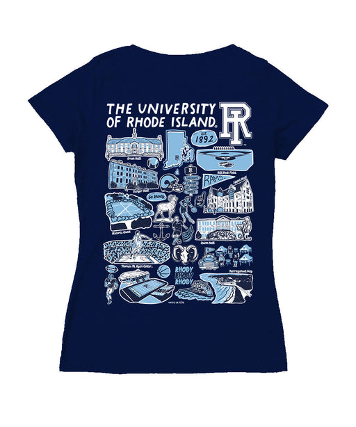 Rhode Island Rams Hand Sketched Vive La Fete Impressions Artwork Navy Women Cotton Short Sleeve V-Neck Tshirt