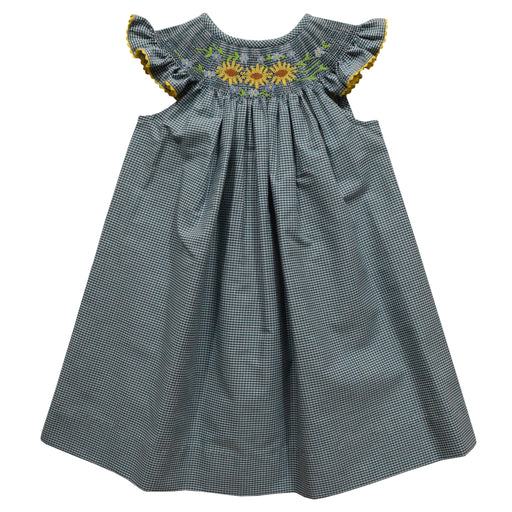 Sunflowers Smocked Hunter Green Check Bishop Girls Angel Wing