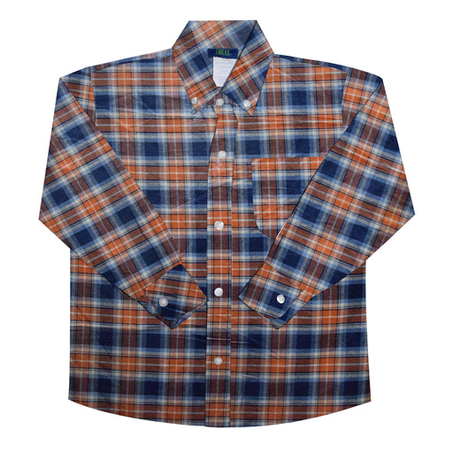 Pointer Plaid Orange and Blue Long Sleeve Button Down Shirt