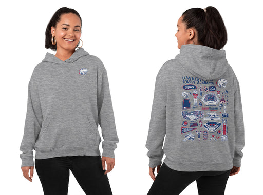 South Alabama Jaguars Hand Sketched Vive La Fete Artwork Cotton Fleece Women Hoodie