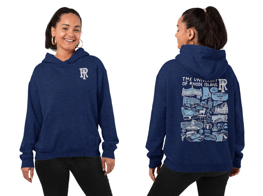 Rhode Island Rams Hand Sketched Vive la Fete Artwork Navy Cotton Fleece Women Hoodie